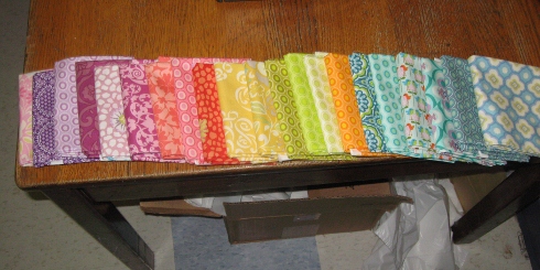 It’s fun to work quilt shows especially since we are an online shop . It gives us a chance to meet new people and even see returning customers. We get a feeling for what excites and inspires them. We enjoy helping people with color choices and bringing ideas to life. Here’s a grouping we helped one of the ladies put together.Very cheerful!