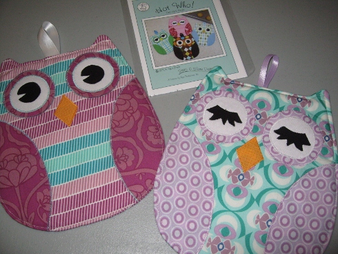 I worked on a sample this week from the Hot Who! Hot Pads pattern and used this fabric for the body. These were simple and I completed them in an afternoon.