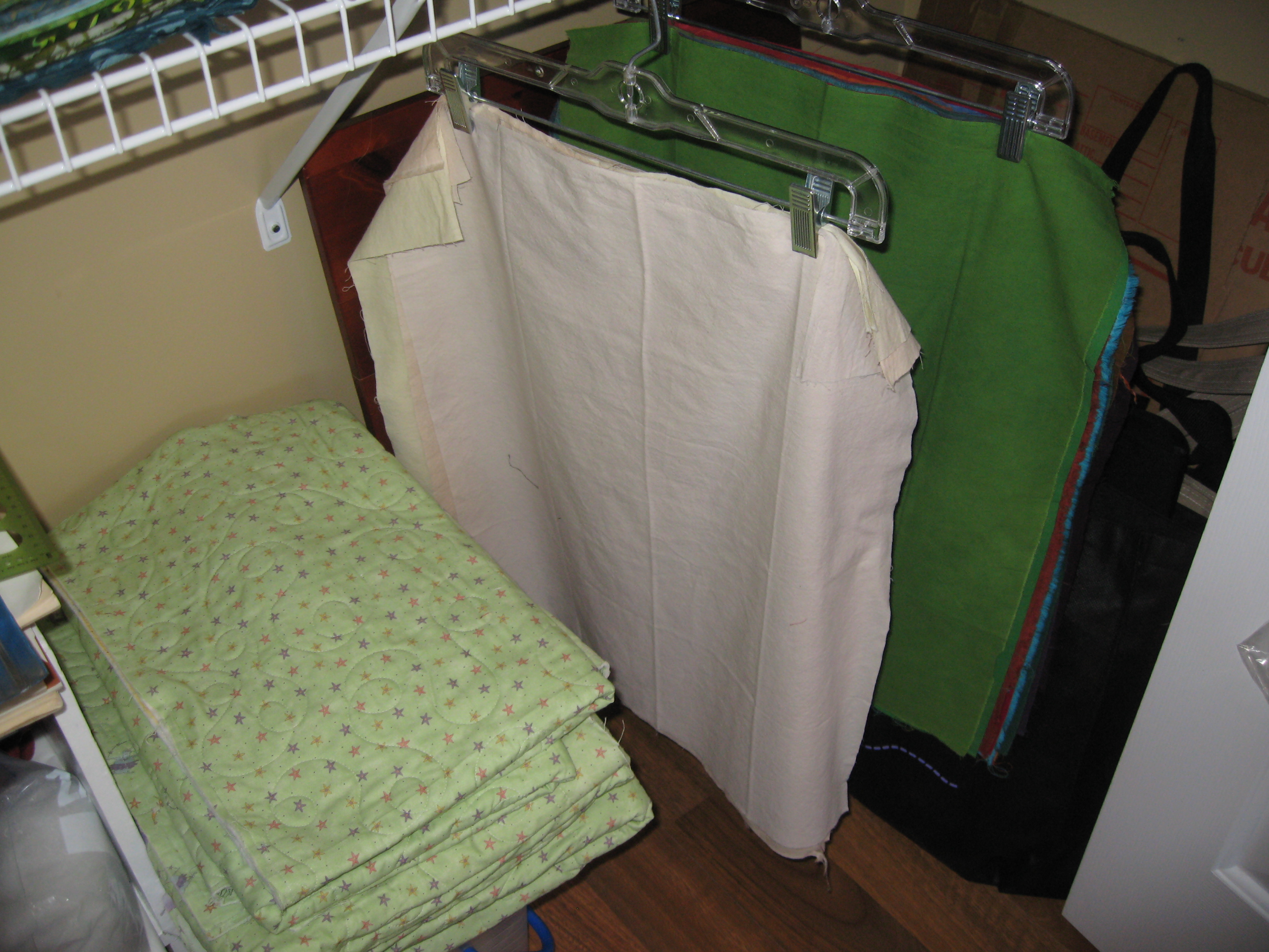Hanging your “waiting to be quilted” projects or these hand dyed fabrics from hangers is a great idea.