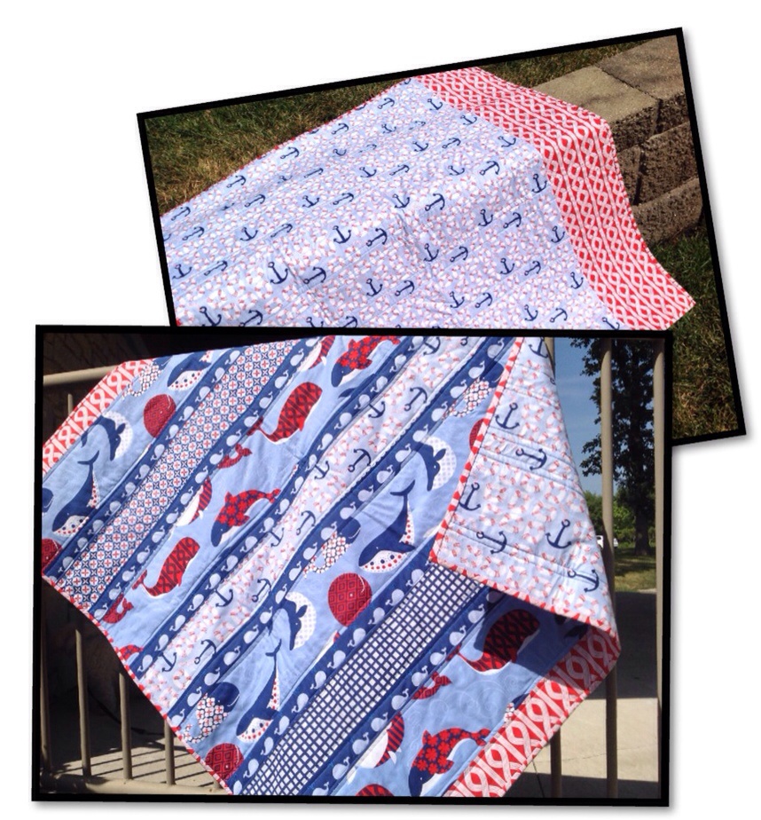 I knew I wanted to do a strip quilt with this line. It’s perfect with the big playful whales and the baby whales in a row!