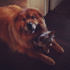 Check out the cute pups roaming the house. Every time the yorkie would get in a little trouble he’d hide in the chow! Lol..so cute.