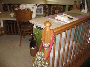 As some of you know, I use my loft space as my sewing room. Sure, it’s small but I’ve grown accustomed to the spot and I’m not sure I would be happy sewing anywhere else in my house. In order to keep my sanity though, I’ve got to be organized and I can’t keep too much of a stash on hand, so I try to use what I buy.