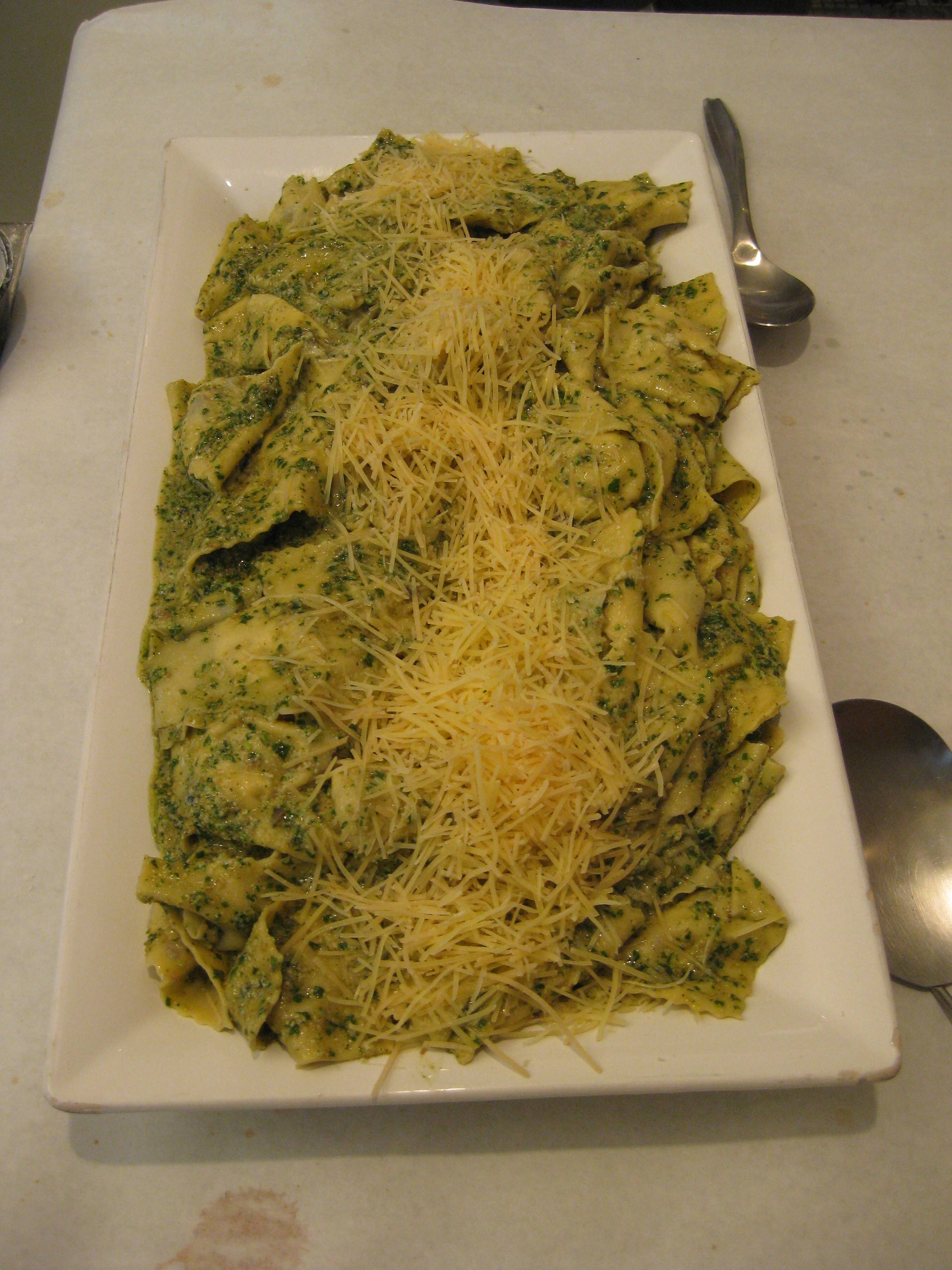 We learned how to prepare pasta dough, fill raviolis, cut pappardelle noodles and make two sauces -Vodka and a walnut Pesto —YUM YUM YUM!