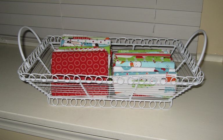 I also got this white wire basket that I think is perfect to display fat quarters….$5!