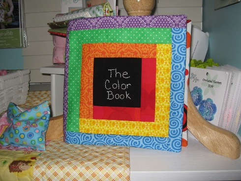 Batting scraps in between the pages make it soft and flexible for baby. A little hand stitching and a pieced log cabin cover to finish it up and you have a handmade, unique gift for baby’s Christmas.
