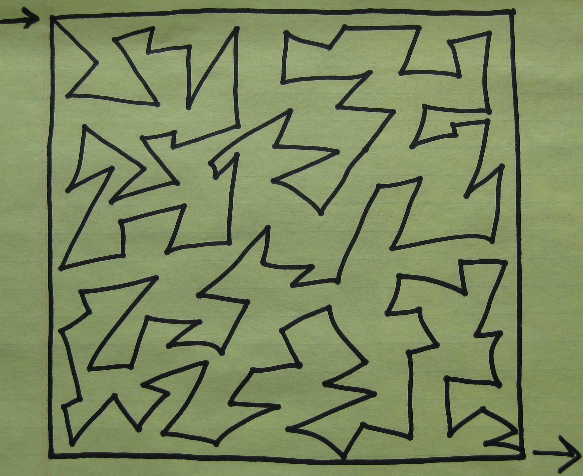 Square 2 – Start at any corner you are most comfortable I tend to work this pattern from top left to bottom right. Basically this is a swaying motion back and forth as you meander across the space. This pattern gives you the effect  of a water if you follow my lines you will see how that works. I have used this design on a landscape panel with a pond -the water came alive. It can also be used in a sky to create a eerie stratus type cloud perfect in those Halloween panels!