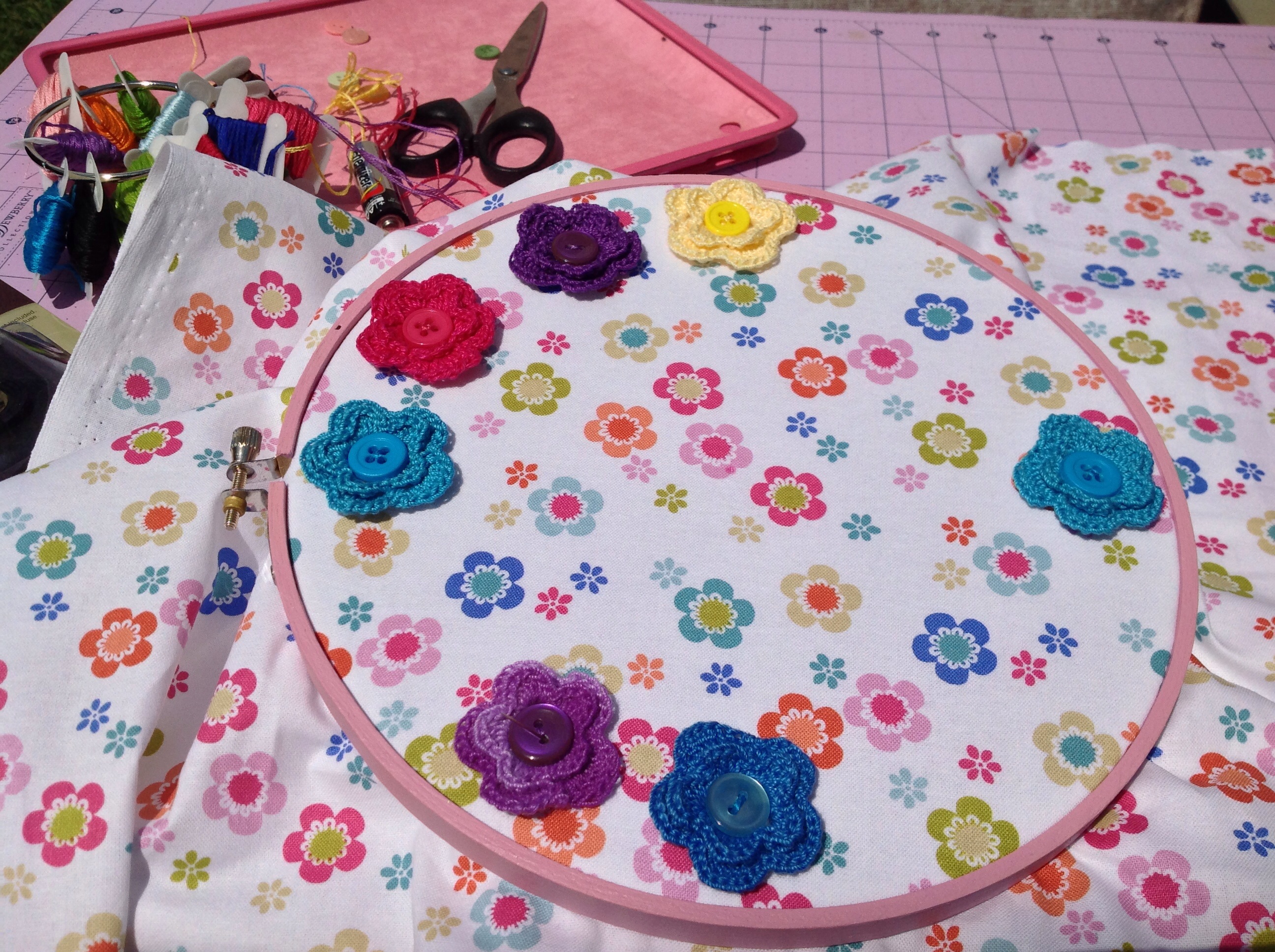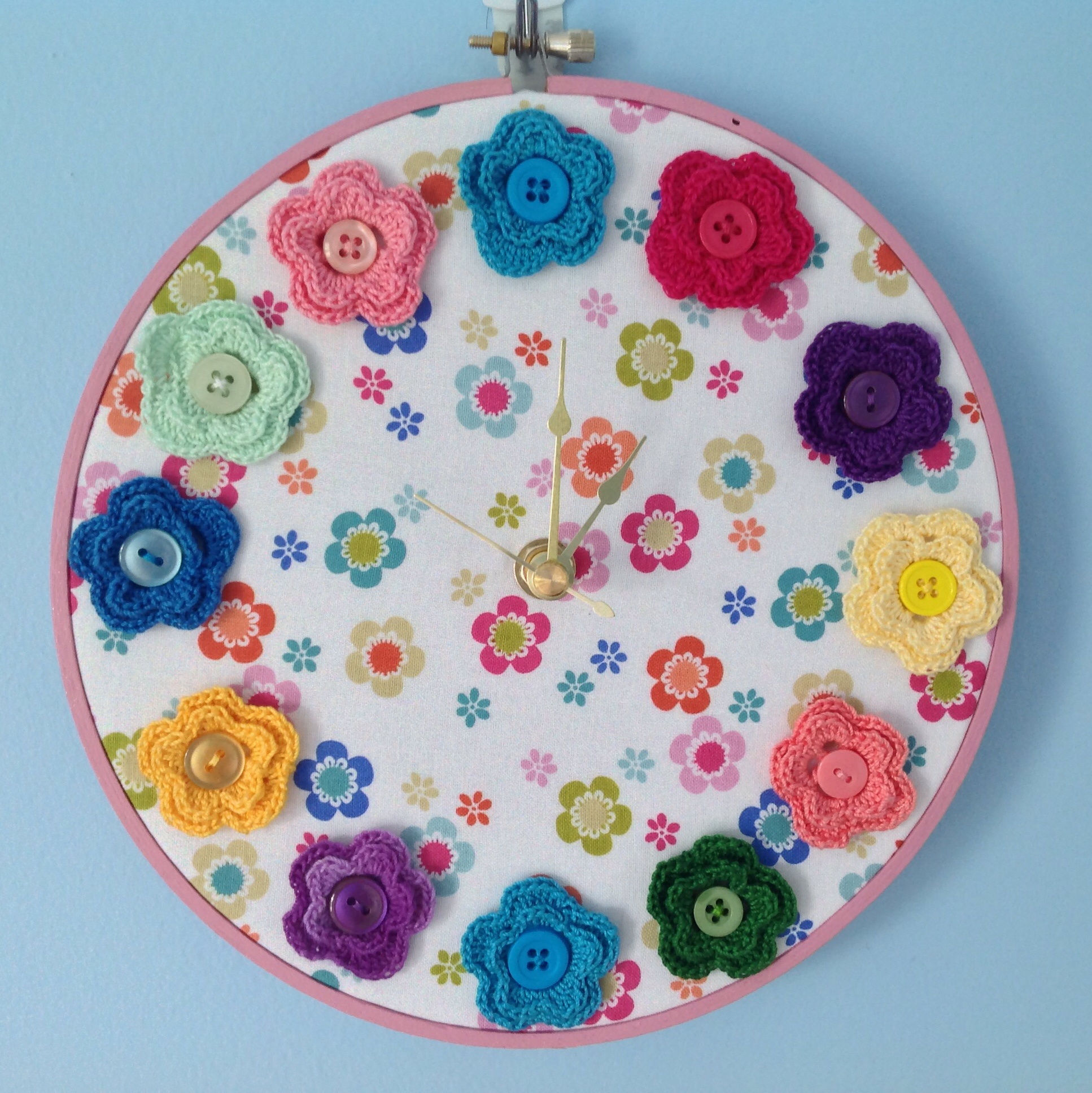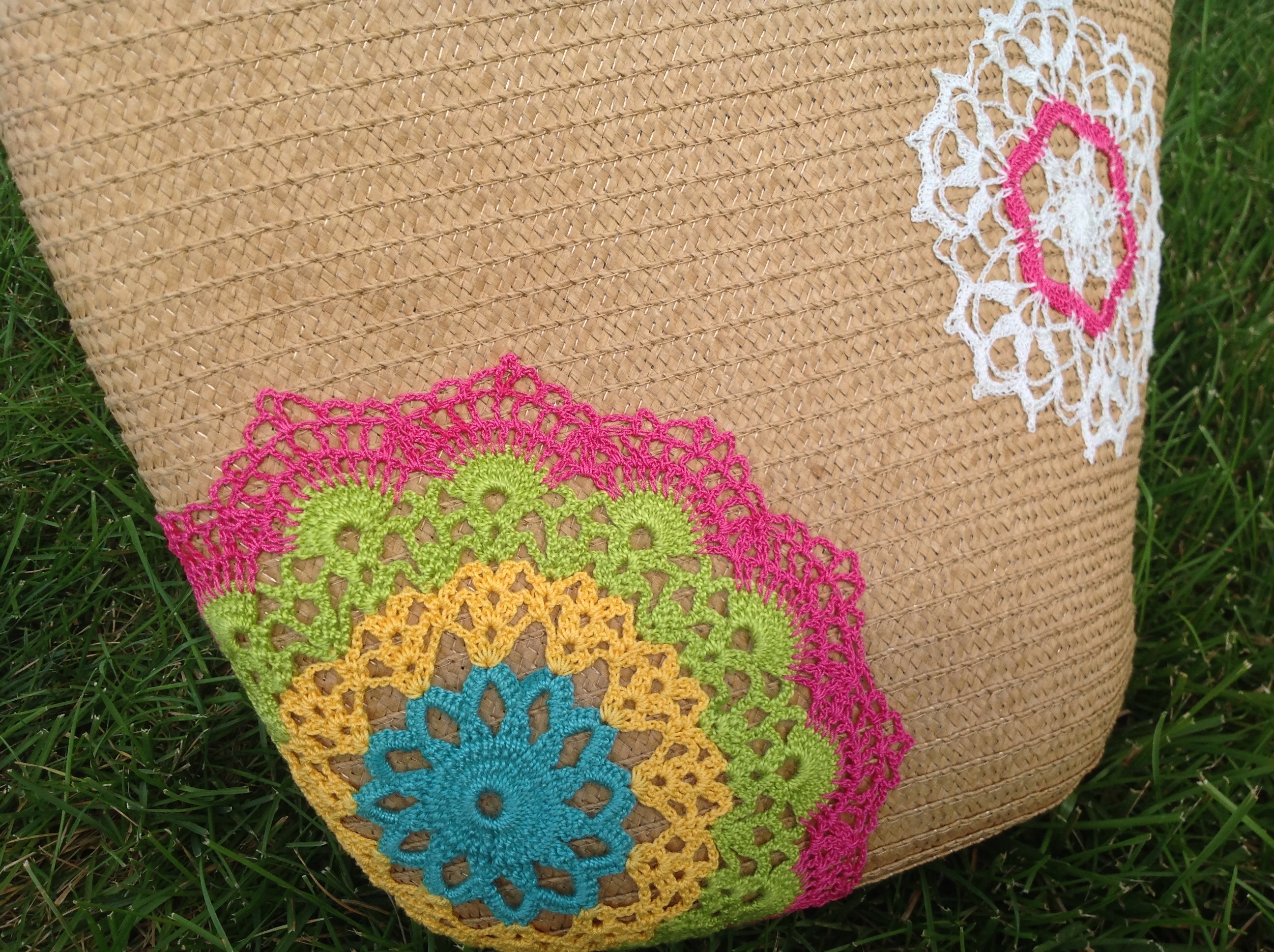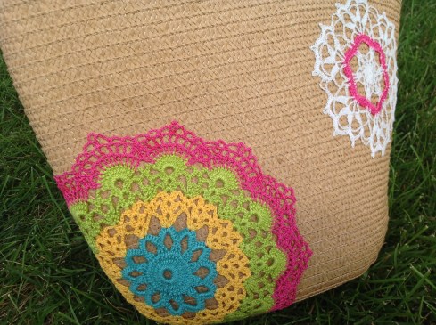 I embellished them with some bright and modern crochet doilies and flowers handmade for this project by my mom.