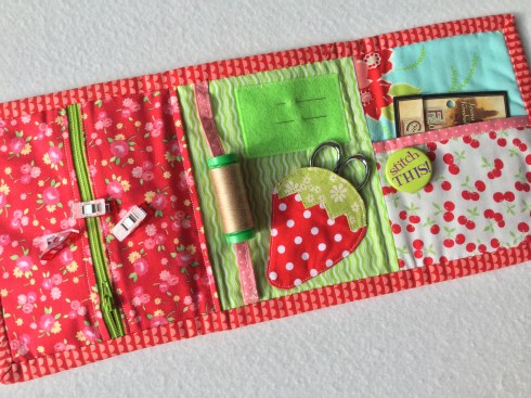 So along with making myself the Classmate for Christmas, Paige and I got together for a sew day at the end of last year and worked on Lella Boutique’s Goody Goody Binding Kit. A traveling kit that holds your thread, binder clips, needles and scissors. This is genius, especially since I’m always working on a binding while I’m in the car. And did I mention that’s it’s so stinkin’ cute?!