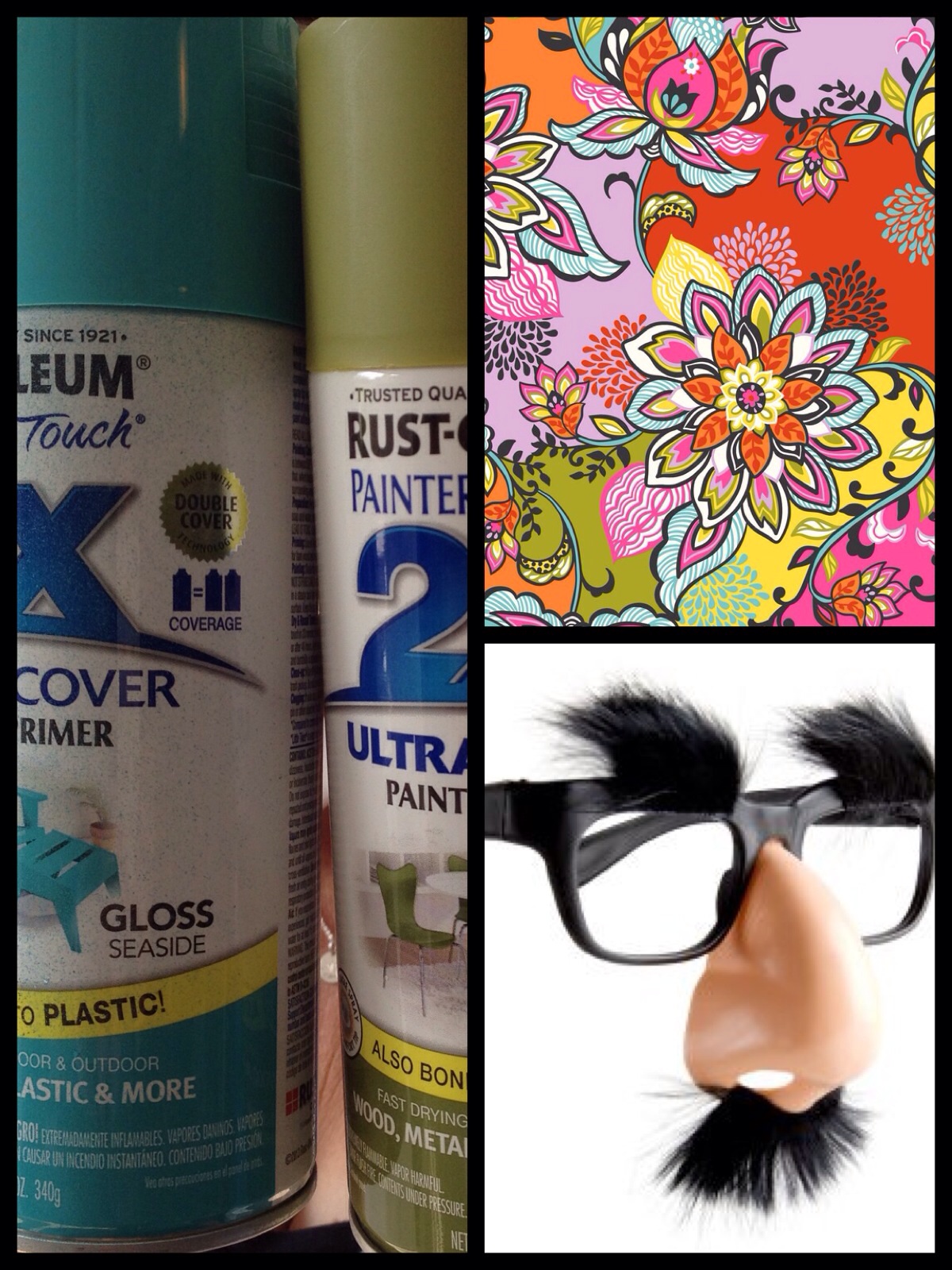 Materials: 2 cans of spray paint, a disguise in case she comes home early, I mean a mask and sunglasses for protection, fabric and new wood for the seats, & a sheet to protect the grass.