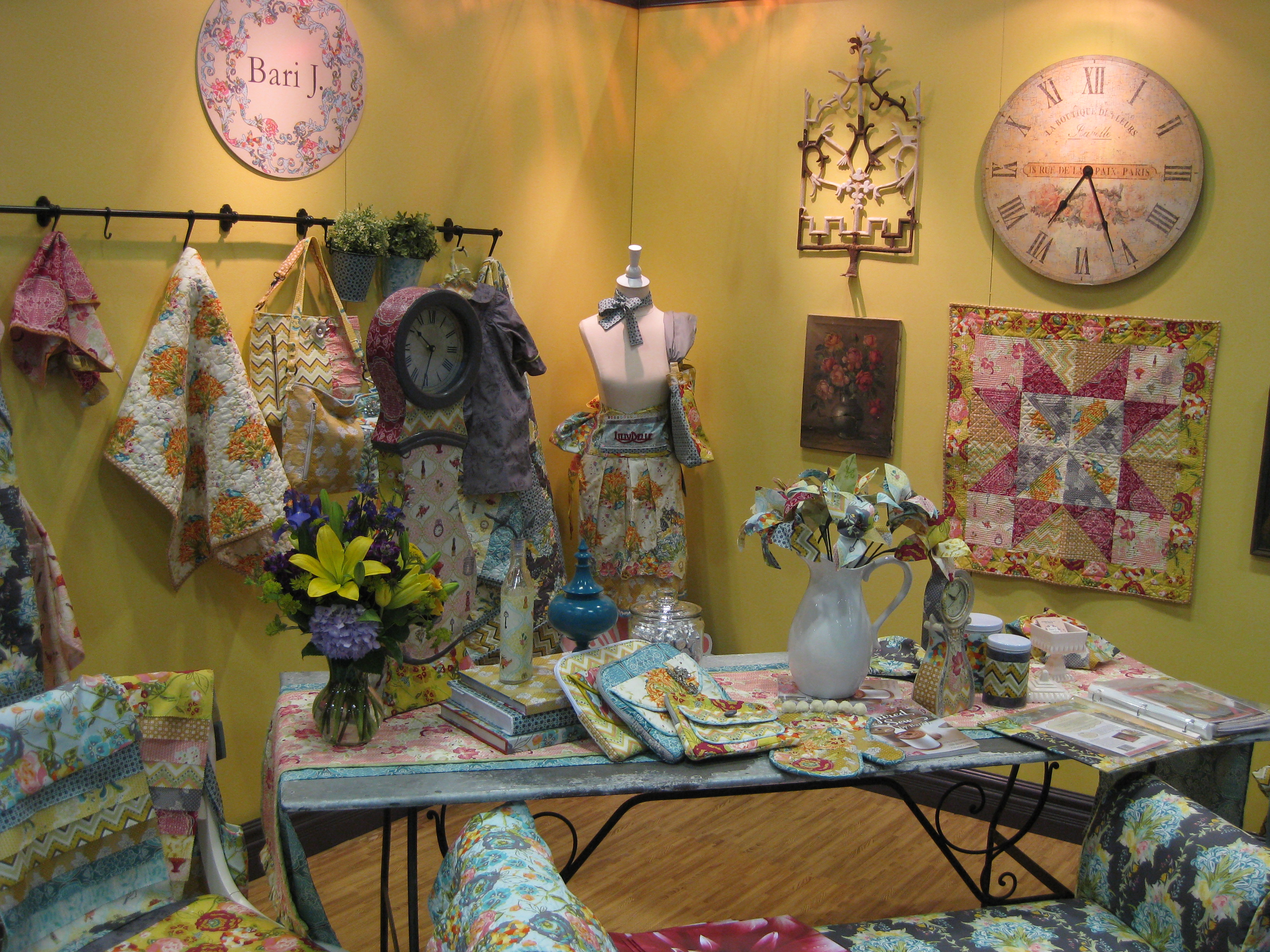 Next up is Art Gallery Fabrics..This is Bari J.’s booth. She is Art Gallery’s newest designer, showing off her new line Lilly Belle. Which we have an order placed for. Beautiful fabric!