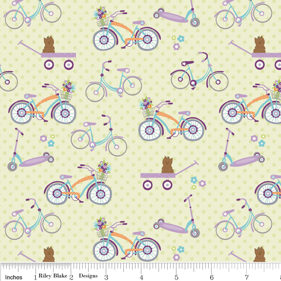 Another sweet line we got in this week is Dress Up Days by Riley Blake. Cute scooters and little chevron prints. And everyone knows I can’t resist a bicycle with a basket of flowers:)
