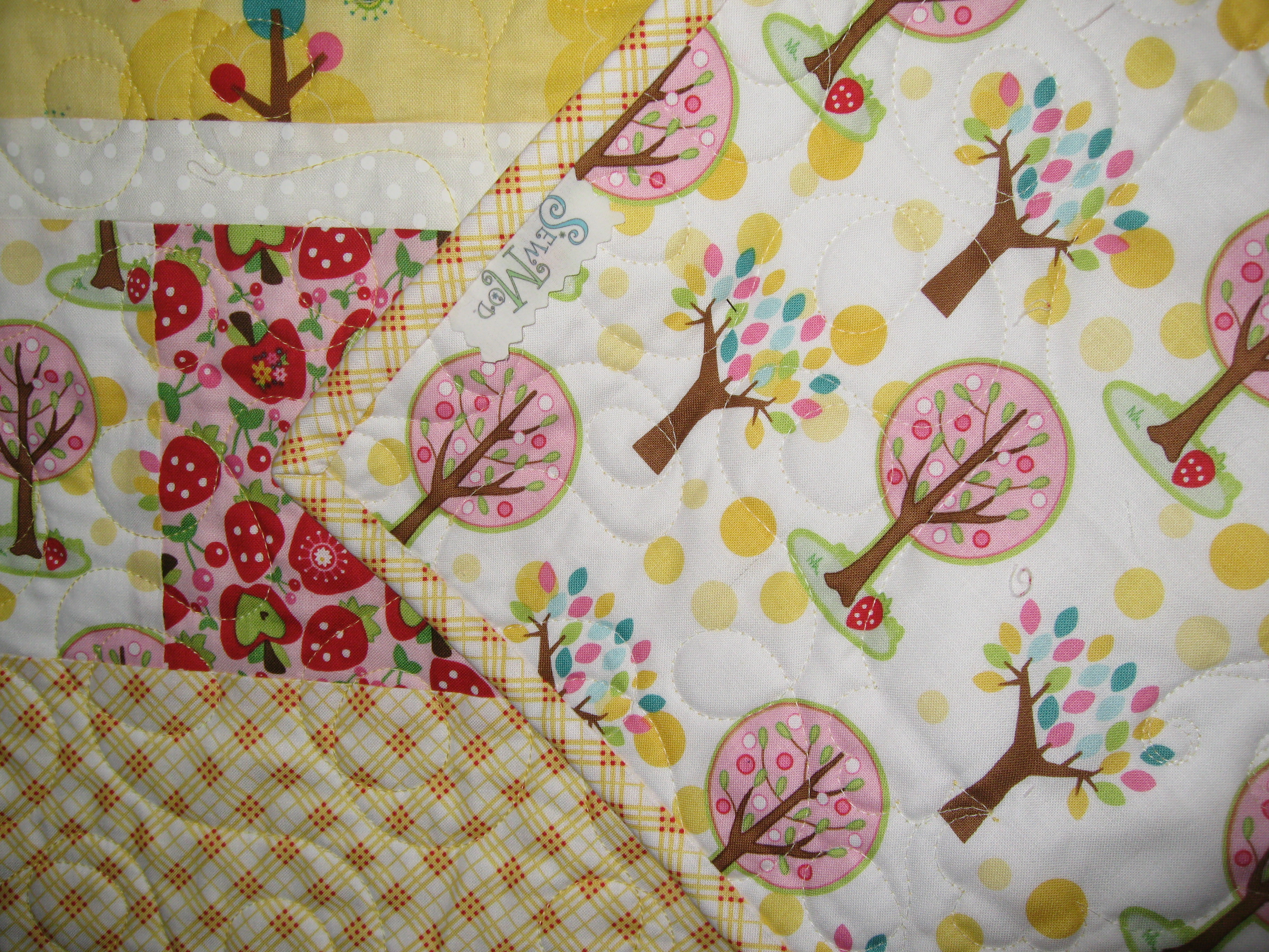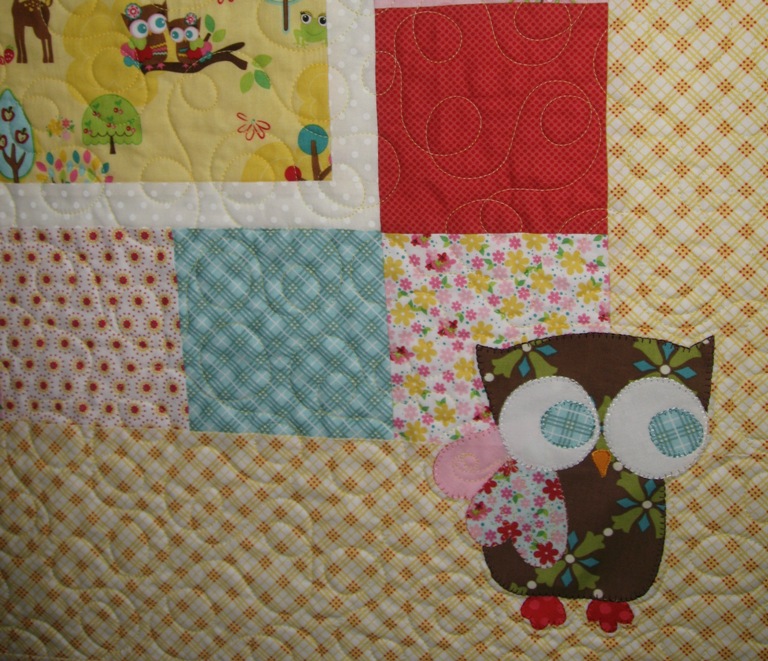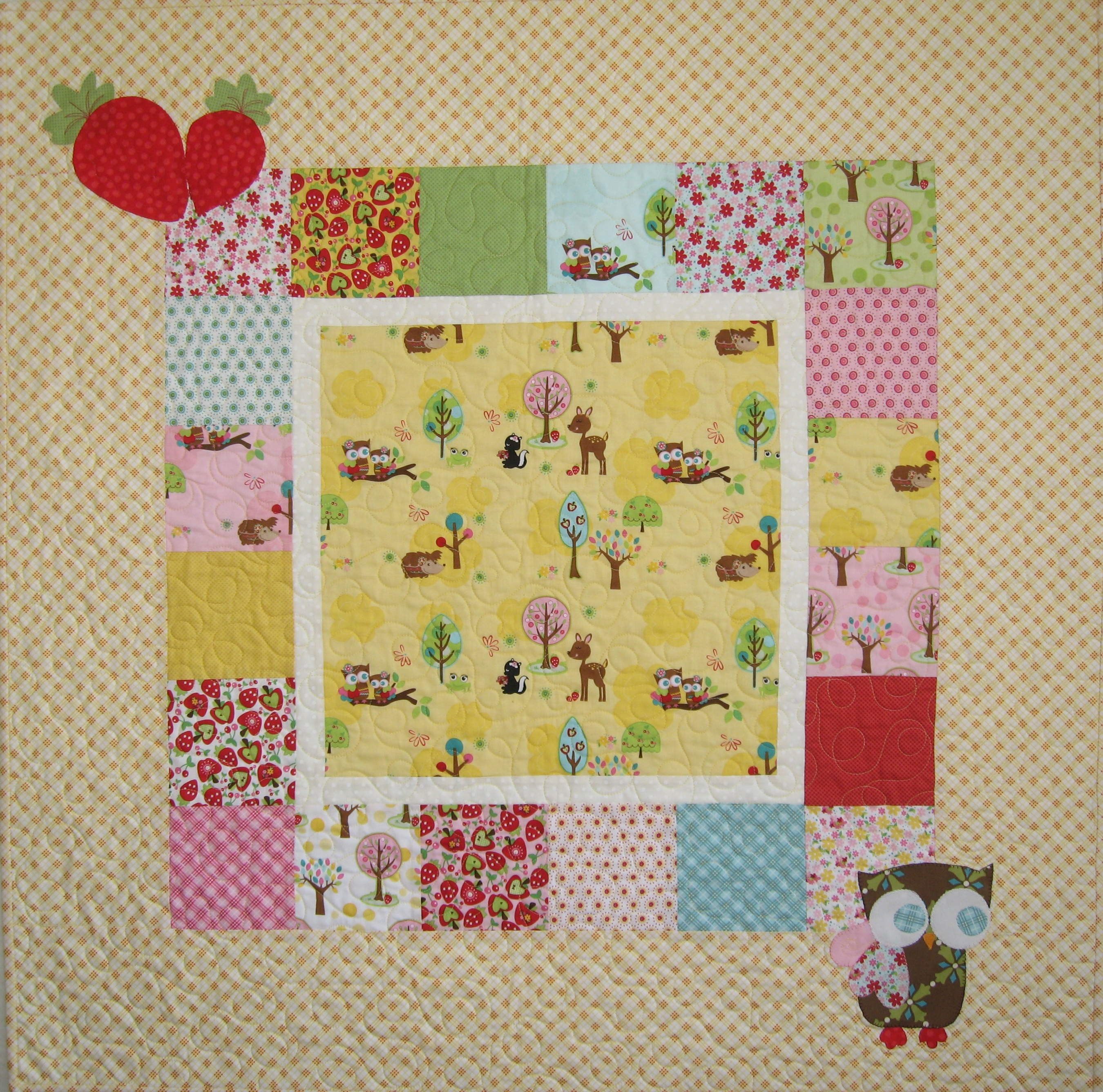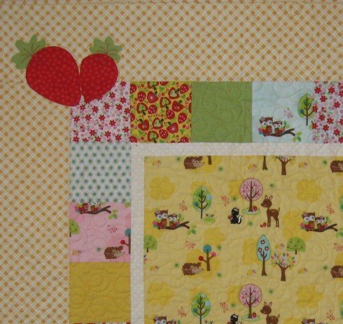 I appliqued strawberries in one corner and a sweet little owl in the other.